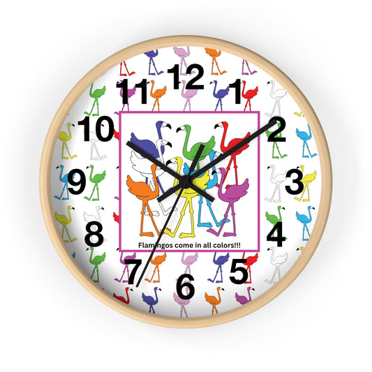 "Flamingos Come In All Colors" Wall Clock by Lu Lu