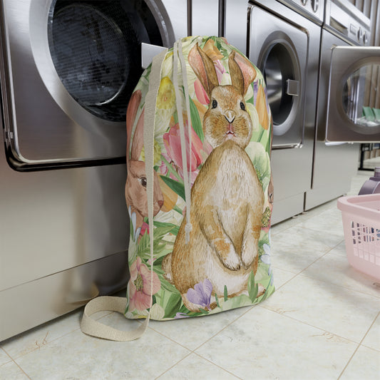 Spring Floral & Rabbits Laundry Bags by Miss Daisy