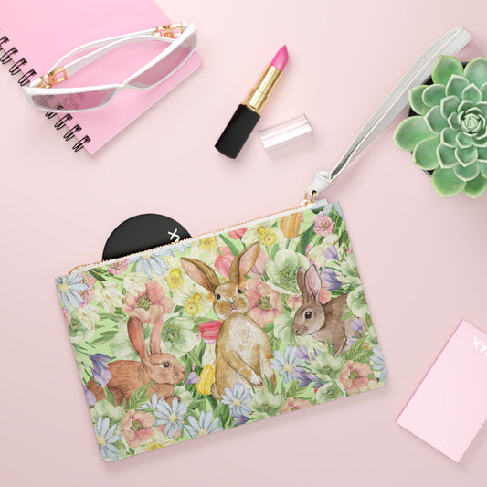 Spring Floral & Rabbits Clutch Bag by Miss Daisy