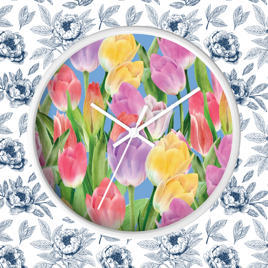 Tulip Sunrise Wall Clock with Light Blue Accents by Miss Daisy
