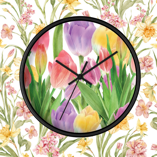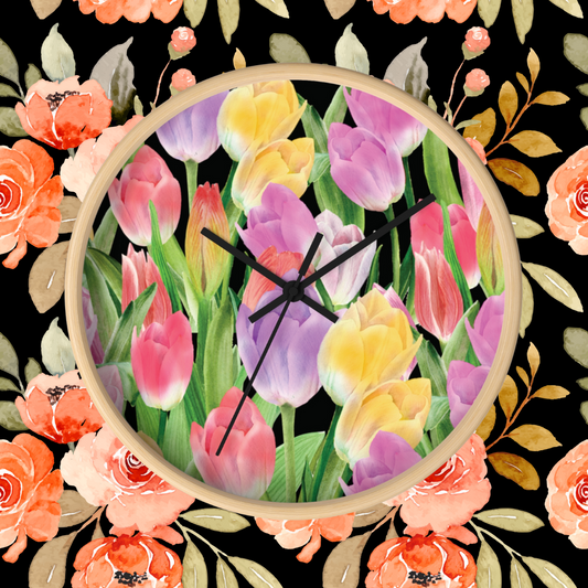 Tulip Sunrise Wall Clock with Black Accents by Miss Daisy