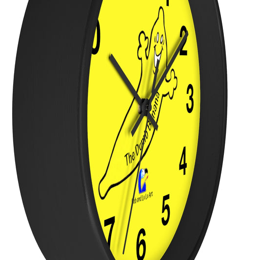 THE DUMB BANANA Wall Clock with Numbers in Yellow - There's always time to laugh when you're a banana!!!