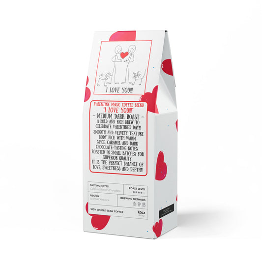 Happy Stick People "I Love You!!!" Valentine Magic Medium Dark Roast 12oz Coffee Blend with Notes of Warm Spice, Caramel & Dark Chocolate