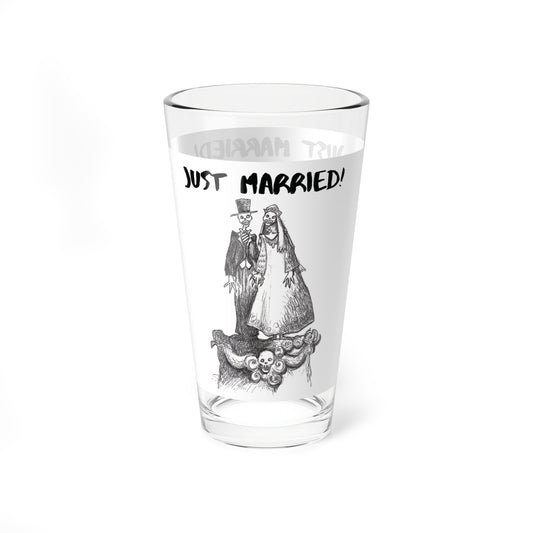 Skeleton Bride & Groom Wedding Cake "Just Married!!!" Halloween 16oz Glass Cup