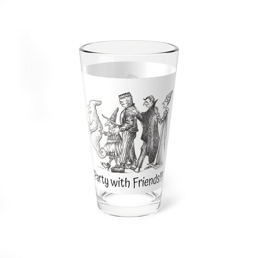 Monsters "Party with friends!!!" Halloween 16oz Glass Cup