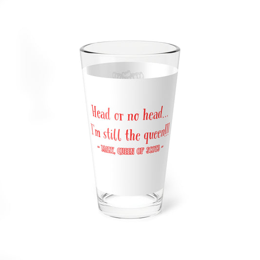 "Head or no head... I'm still the queen!!!" - The Headless Mary, Queen of Scots Halloween 16oz Glass Cup