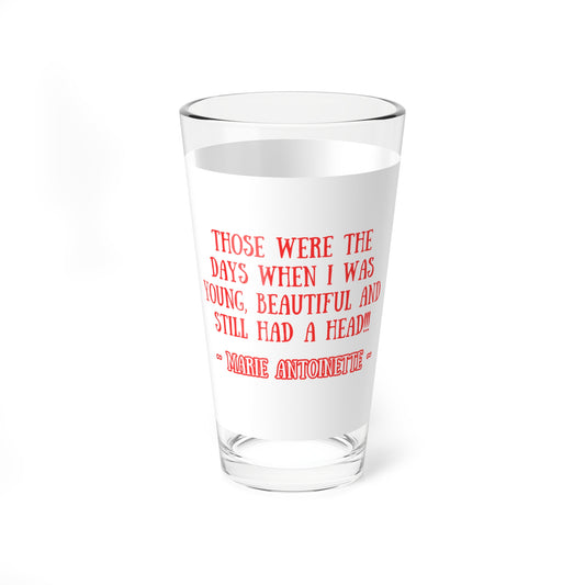 "Those were the days when I was young, beautiful and still had a head!!!" - The Headless Marie Antoinette Halloween 16oz Glass Cup