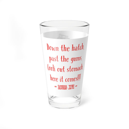 "Down the hatch, past the gums, look out stomach, here it comes!!!" - Headless King Louis XVI Halloween 16oz Glass Cup