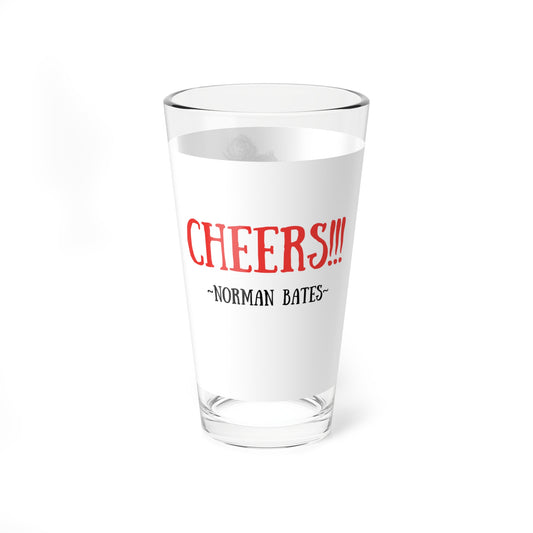 "Cheers!!!" - The Norman Bates Halloween 16oz Glass Cup