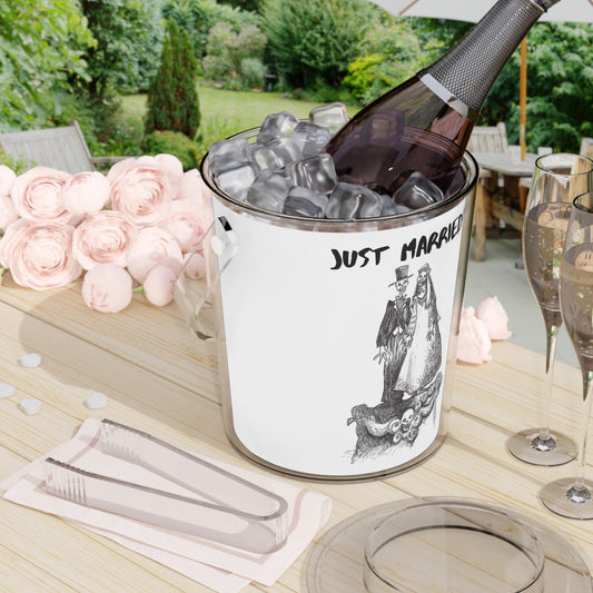 "Just Married" - Skeleton Halloween Ice Bucket with Tongs