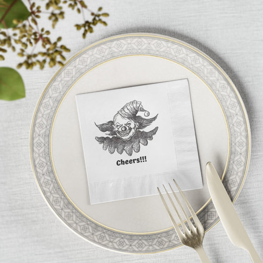 "Cheers!!!" Halloween Circus Clown White Coined Napkins