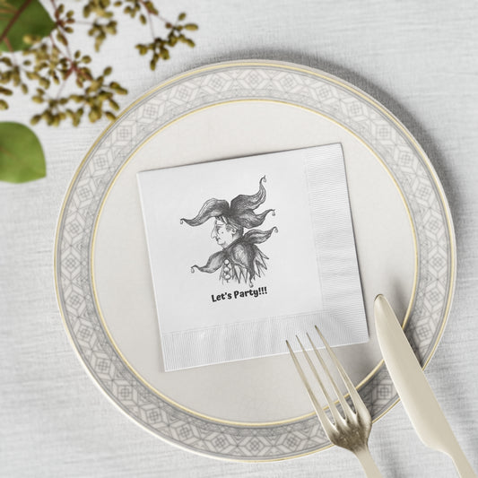 "Let's Party!!!" - Halloween Court Jester White Coined Napkins