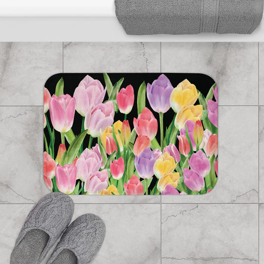 Tulip Sunrise Bath & Shower Mat with Black Accents - The Tulip Sunrise Collection by Miss Daisy