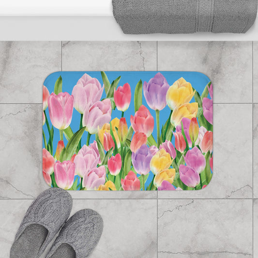 Tulip Sunrise Bath & Shower Mat with Light Blue Accents by Miss Daisy