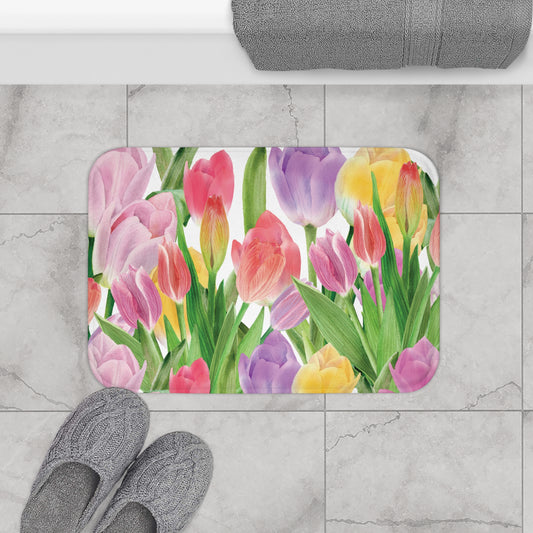 Tulip Sunrise Bath & Shower Mat with White Accents - The Tulip Sunrise Collection by Miss Daisy