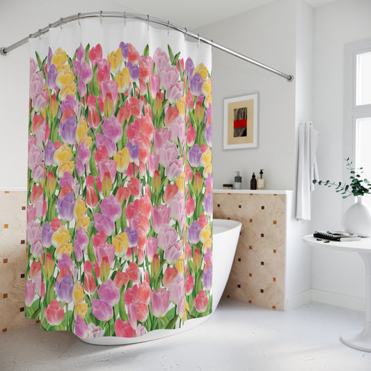 Tulip Sunrise Shower Curtain with White Accents - The Tulip Sunrise Collection by Miss Daisy