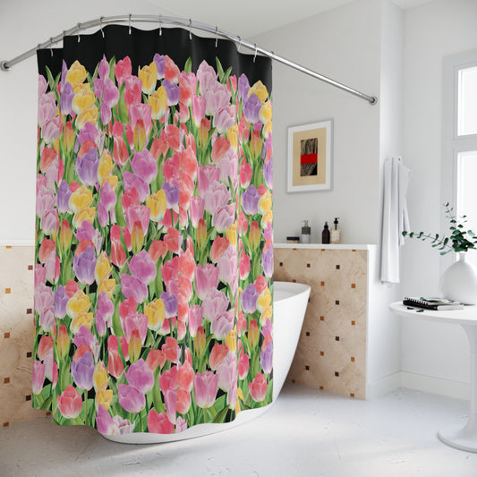 Tulip Sunrise Shower Curtain with Black Accents - The Tulip Sunrise Collection by Miss Daisy