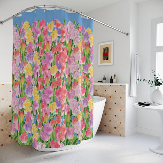 Tulip Sunrise Shower Curtain with Light Blue Accents - The Tulip Sunrise Collection by Miss Daisy