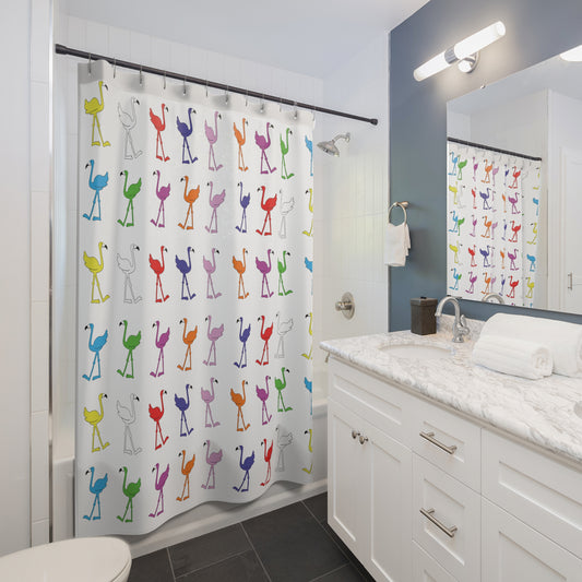 Rainbow Flamingo Club Shower Curtain by Lu Lu