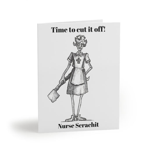 "Time to cut it off!" - The NURSE SCRACHIT Happy Halloween Greeting Cards (8, 16, and 24 pcs) for all nurses!!!