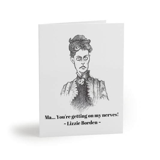 Lizzie Borden - "Ma... you're getting on my nerves" Halloween Greeting Cards (8, 16 and 24 pcs) for everyone who needs "40 Whacks!!!"