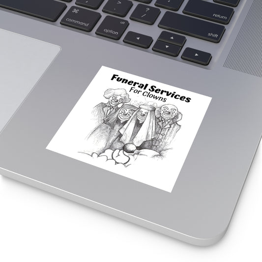 "Funeral Services for Circus Clowns' Halloween Indoor & Outdoor Square Kiss-Cut Vinyl Sticker
