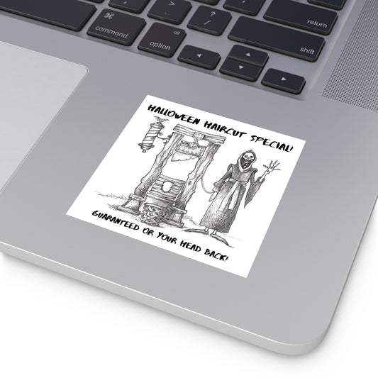 Halloween Haircut Special - "Guaranteed or your head back!!!" Halloween Indoor & Outdoor Square Kiss-Cut Vinyl Sticker