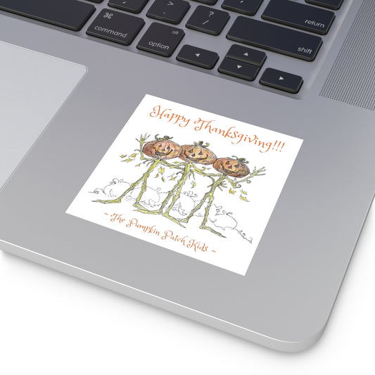 The Pumpkin Patch Kids "Happy Thanksgiving" Holiday Indoor & Outdoor Square Kiss-Cut Vinyl Sticker
