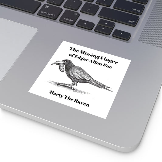 Marty the Raven - "The Missing Finger of Edgar Allan Poe" Halloween Indoor & Outdoor Square Kiss-Cut Vinyl Sticker