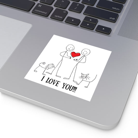 Happy Stick People "I Love You!!!" Happy Valentine's Day Indoor & Outdoor Square Kiss-Cut Vinyl Sticker