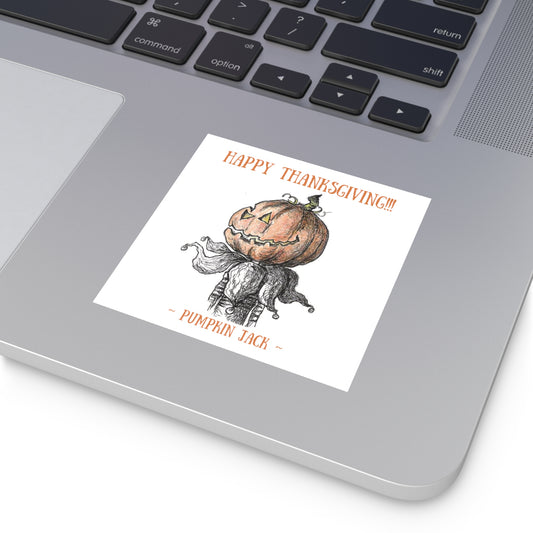 Pumpkin Jack's Happy Thanksgiving Holiday Indoor & Outdoor Square Kiss-Cut Vinyl Sticker