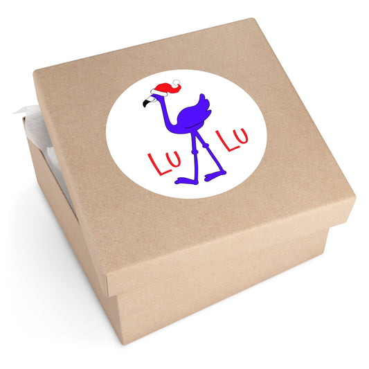 Lu Lu The Blue Flamingo Round Indoor & Outdoor Kiss Cut Christmas Sticker