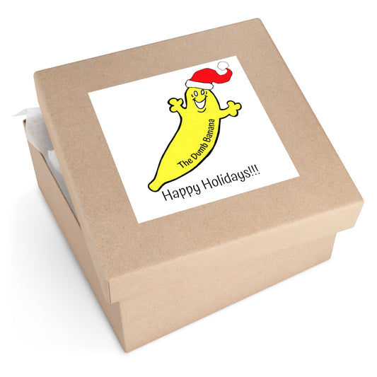 The Dumb Banana "Happy Holidays!!!" Square Kiss-Cut Christmas Sticker, Indoor & Outdoor