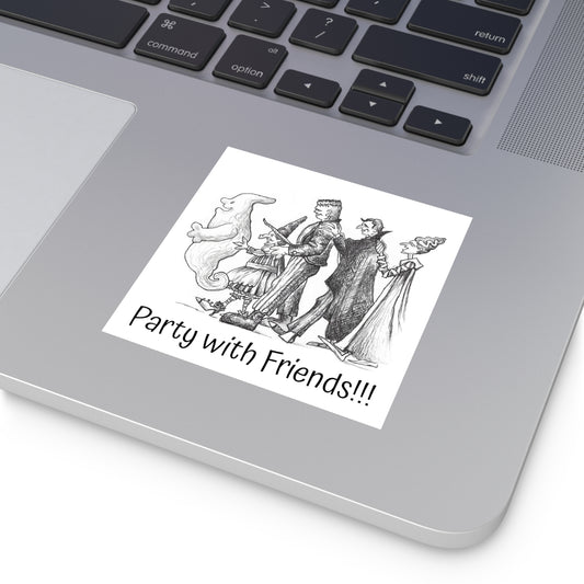 "Party with Friends" - The Monster Conga Line Halloween Indoor & Outdoor Square Kiss-Cut Vinyl Sticker
