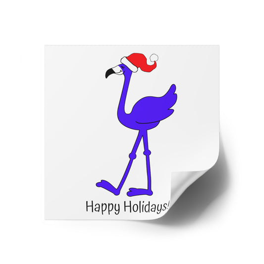 Lu Lu The Blue Flamingo "Happy Holidays!!!" Square Indoor & Outdoor Kiss-Cut Christmas Sticker