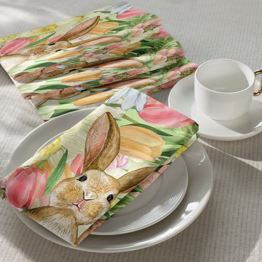 Spring Floral & Rabbits Cloth Napkin Set of 4