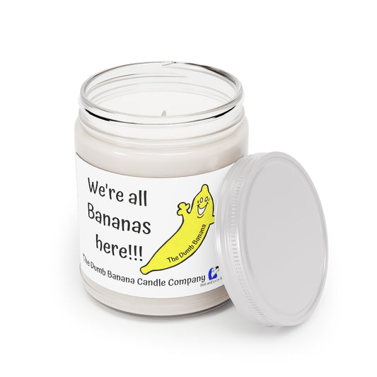 "WE'RE ALL BANANAS HERE!!!" 9 oz Aromatherapy Scented Candles by The Dumb Banana - If life throws you a banana... light a candle, relax and laugh with the Dumb Banana!!!