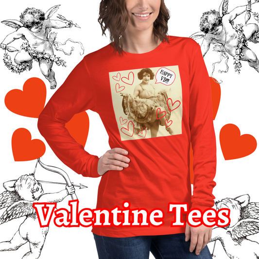 Vintage "Happy VD!!!" Valentine Unisex Style Long Sleeve Regular Fit Tee for Women