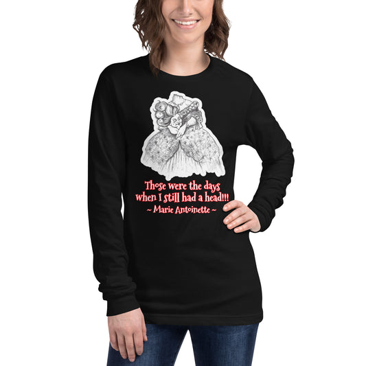 Headless Marie Antoinette - "Those were the days when I still had a head!!!" Halloween Unisex Long Sleeve Regular Fit T-Shirt for Women
