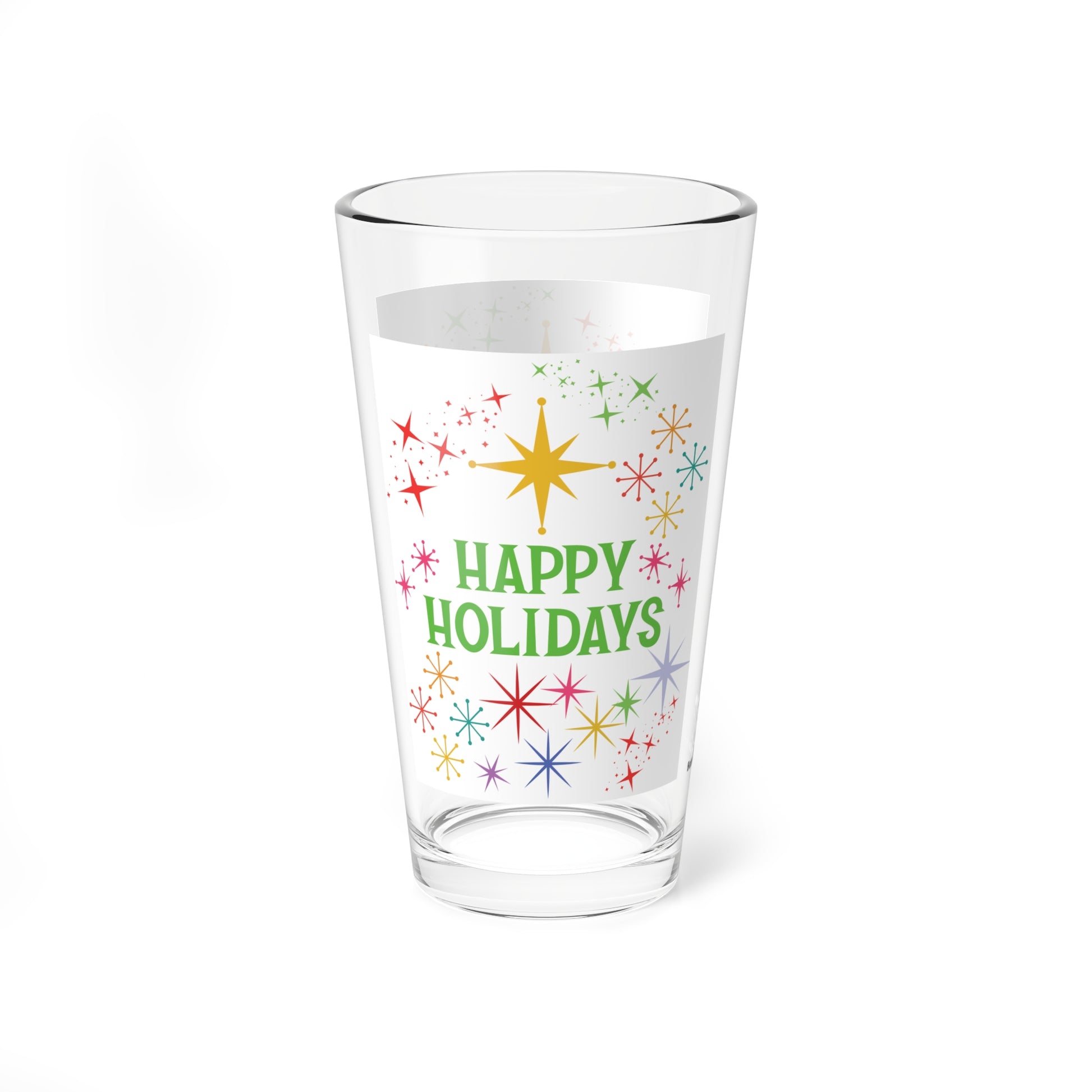 Mid-Century Stars & "Happy Holidays" 16oz Glass & Shaker