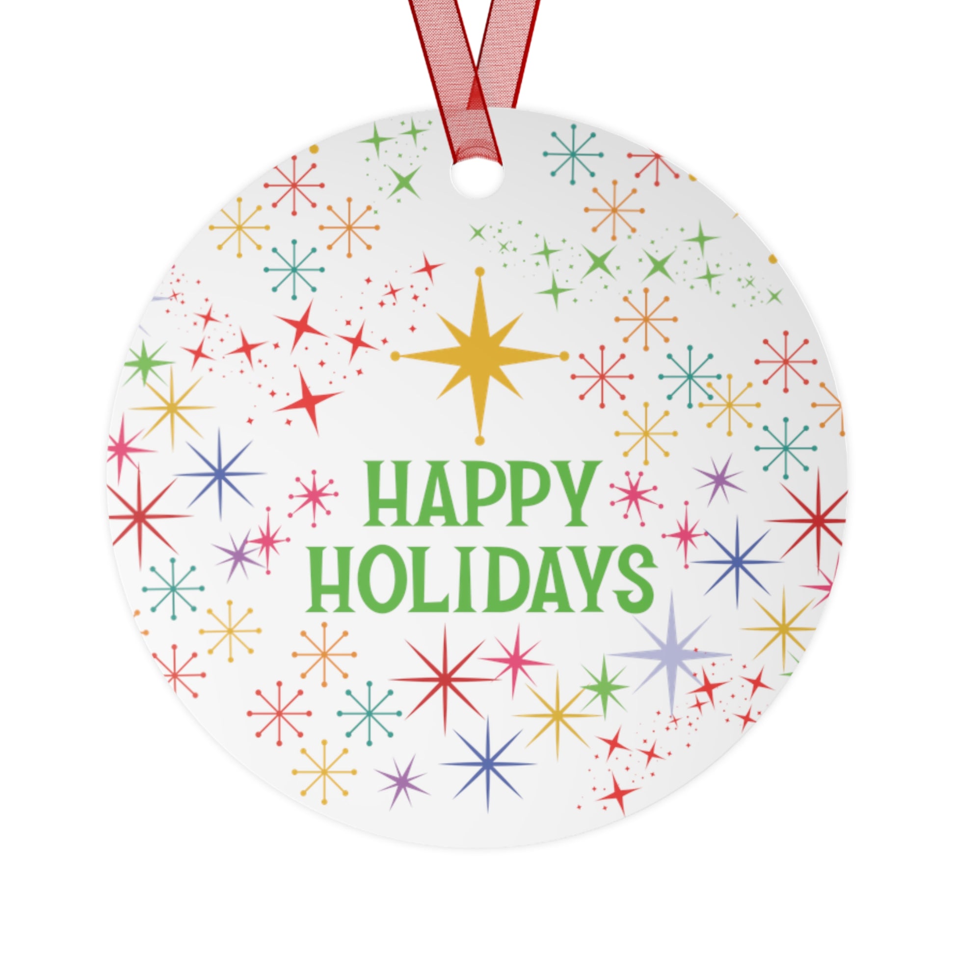 Mid-Century Stars & "Happy Holidays" Christmas Tree Metal Ornament